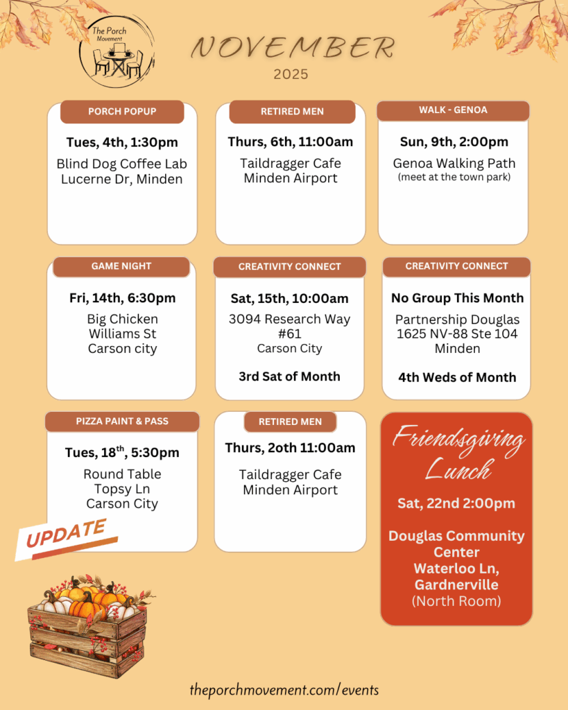 Traditional Holidays can find us wanting to connect with others in meaningful ways. Missing people we used to spend time with. We would love to have you at our Friendsgiving! It is open to the community! Do you know someone who could use an invite? Invite them!